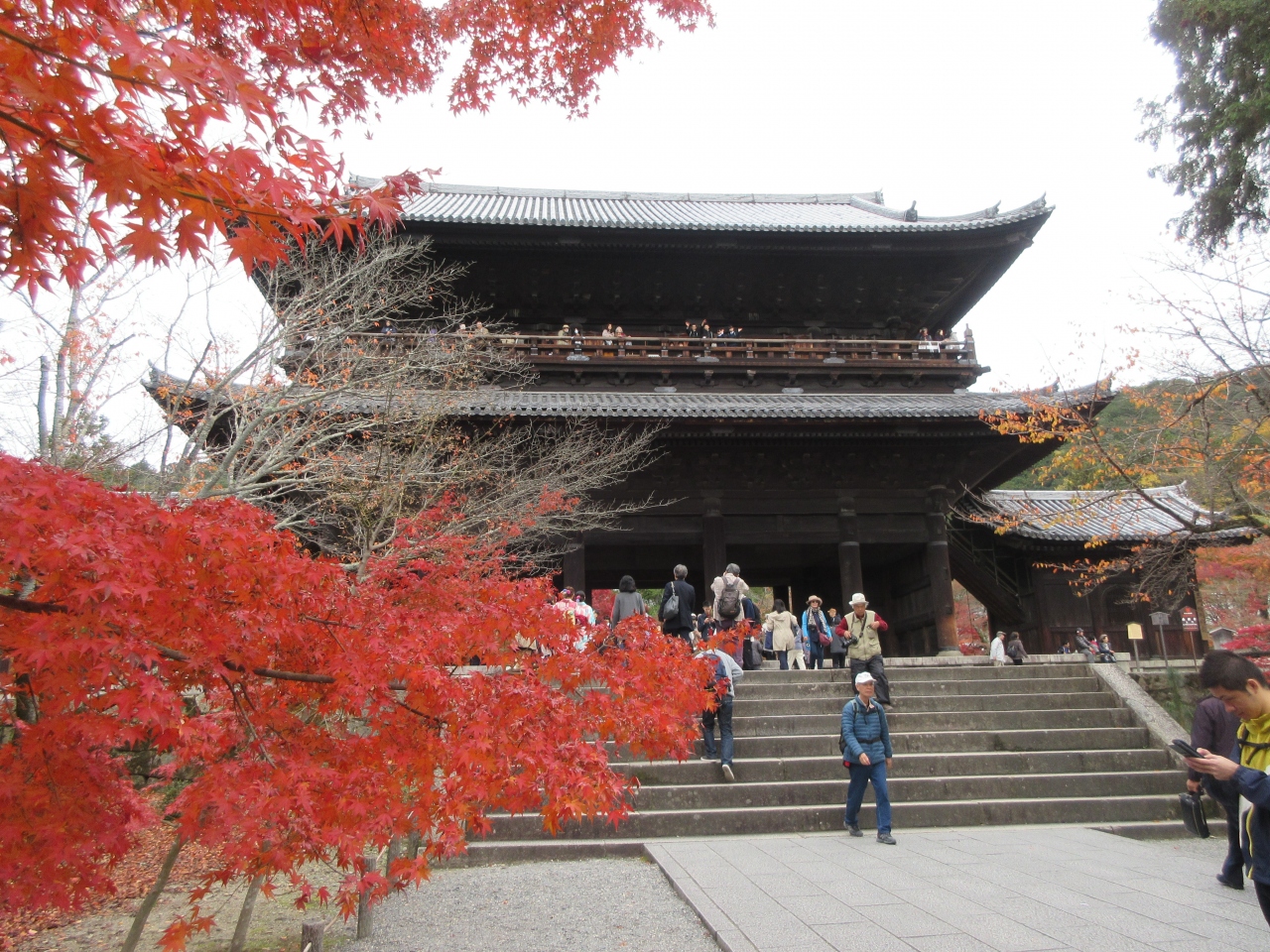 4年前の冬に訪れた時は人も少なく、のんびり京都らしさを満喫できた南禅寺でしたが、今回は紅葉シーズンだったこともあり多くの人で賑わっていました。紅葉が美しい寺としてCMなどにも登場する寺ですが、最盛期を少し過ぎていてそれほどの感動はありませんでした。前回訪れた時は寺の隅々まで散策したので、今回は山門に上って上から仏殿と境内を眺めてきました。寺を一望でき、紅葉が美しい場所が分かり、お殿様になった気分が味わえました。
