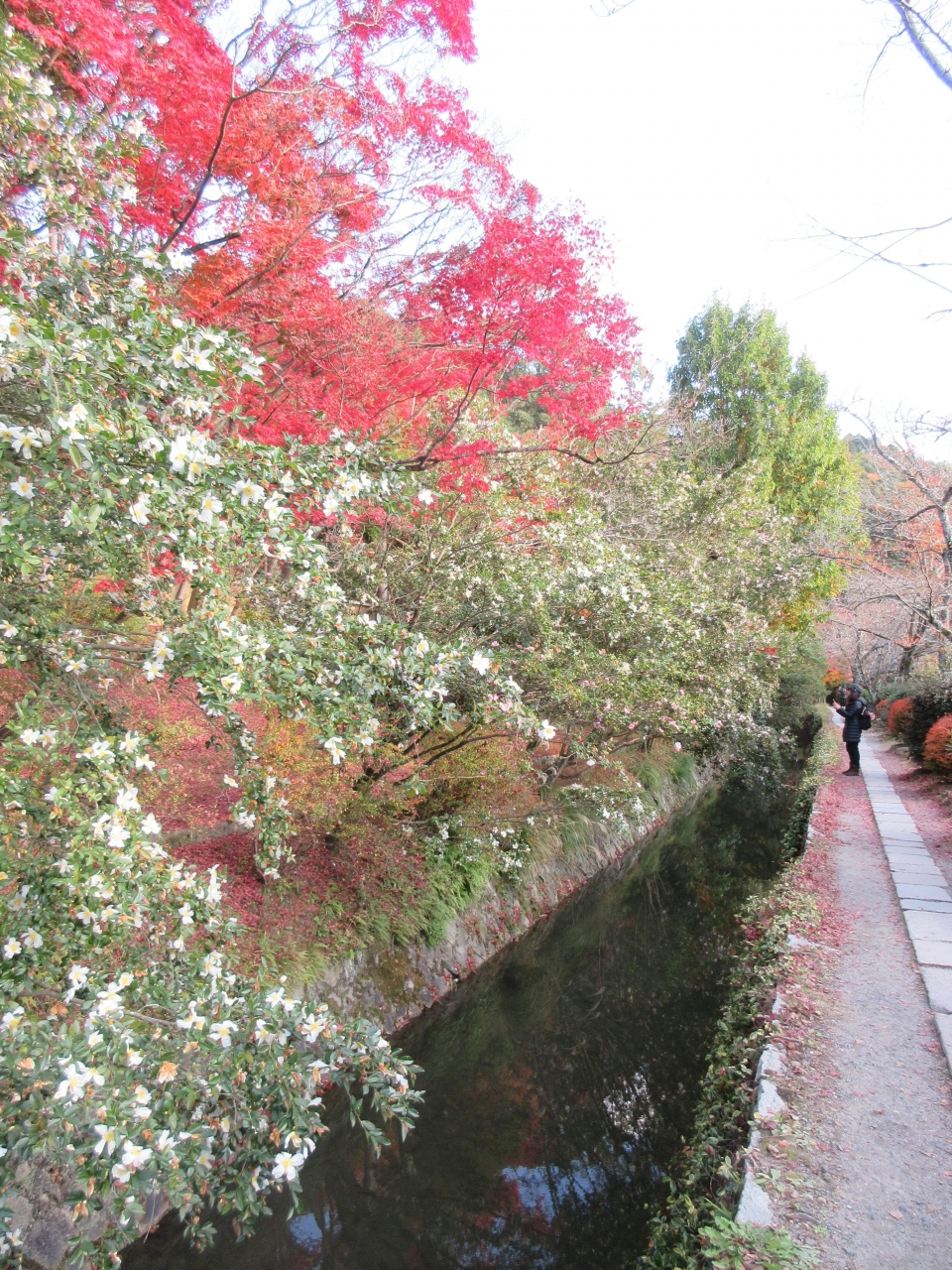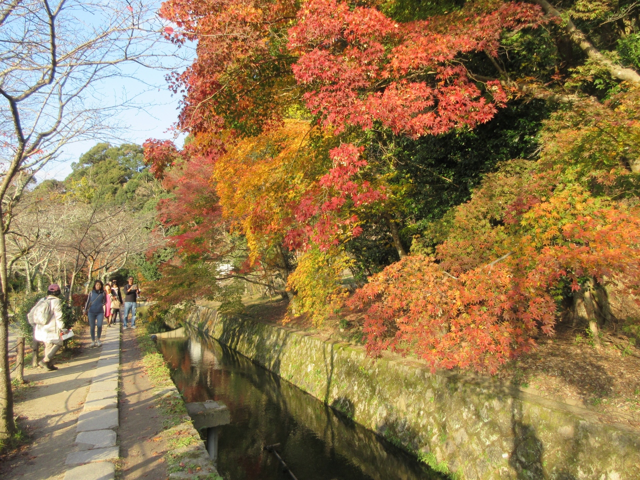 南禅寺と永観堂の紅葉を鑑賞した後、金戒光明寺を訪れる際に散策しました。紅葉に時期だったため、木々の葉が色づいているかと思いましたが、ほとんど紅葉は見られませんでした。しかし混雑していた永観堂の後だったため、人通りが少ない静かな道を散策することができ、ほっとするとともに落ち着いた気持ちになりました。小川が流れ、鴨が泳ぐ哲学の道は散策に向いていると感じました。道にはたくさんの桜が植えられていたので、桜の季節は混み合うことでしょう。