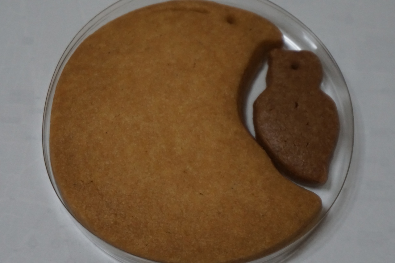 包みを開くと親子の朱鷺を模したサブレで、豆粒みたいなのが子供の方。ただ、朱鷺には見えないかな。味も普通のサブレです。