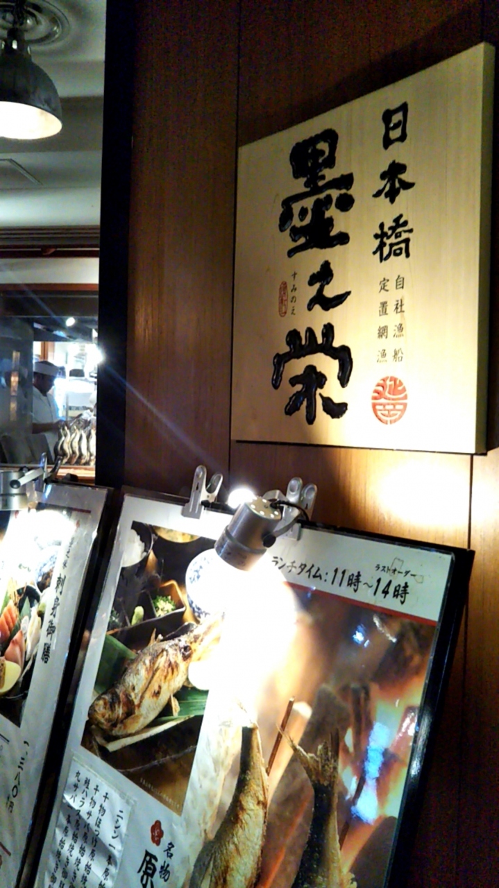 日本橋 墨之栄は、日本食がいただけるお店です。こちらの名物は、なんといっても、『原始焼き』です。店頭にて、まるごと串に刺さった魚(にしんやサバなど)を炭火で焼きあげた 豪快な一品です。原子焼きをいただこうとランチタイムになるとビジネスマンなどが多く利用されており、満席状態となっています。魚(カルシウム)不足にも良いメニューです。