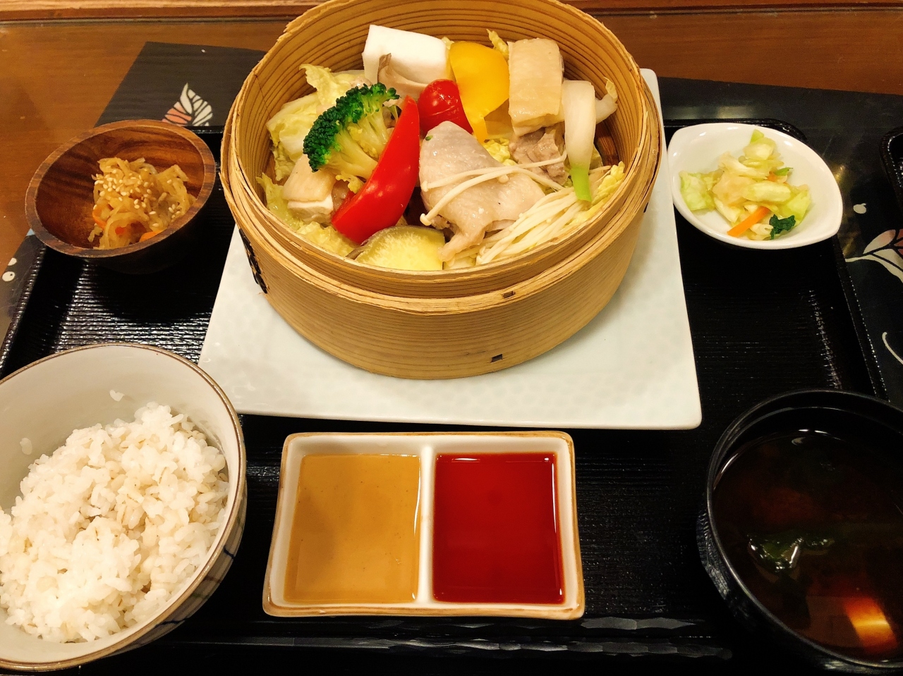 せいろ蒸しは、ゴマダレとトマトポン酢の2種あって、トマトポン酢変わってて美味しかったです。ちょっと味見させてもらった(^-^)