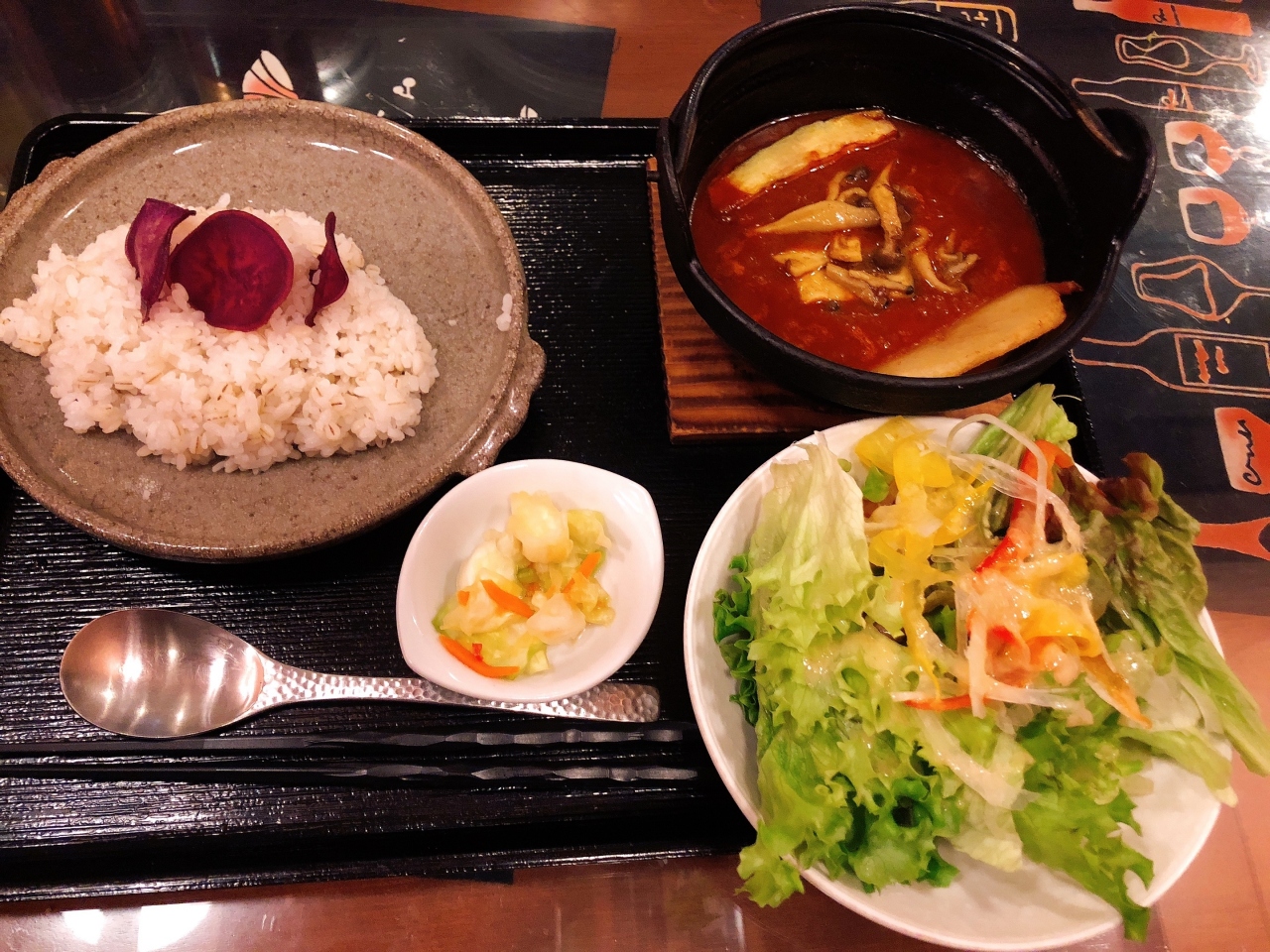 ランチメニューは豊富で、私はカレーを、娘はせいろ蒸しを。