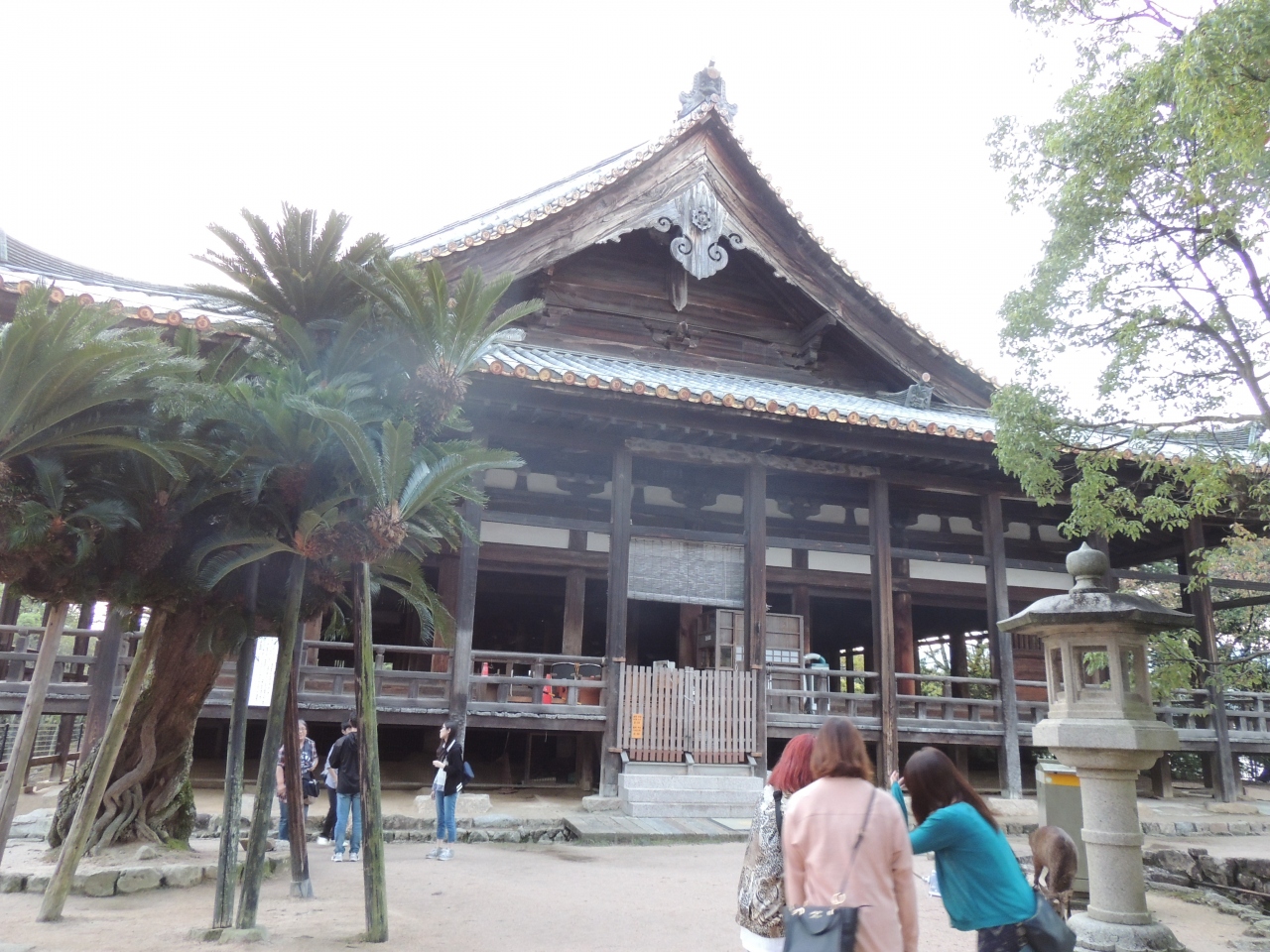 五重塔のすぐ向かいにあり、1587年に豊臣秀吉の命で建立されたのですが、秀吉が完成まえに亡くなってしまい、未完成のまま残っているそうです。今では秀吉を祀る神社となっているそうです。立派な木造建築で壁がなくちょっと変わった神社です。