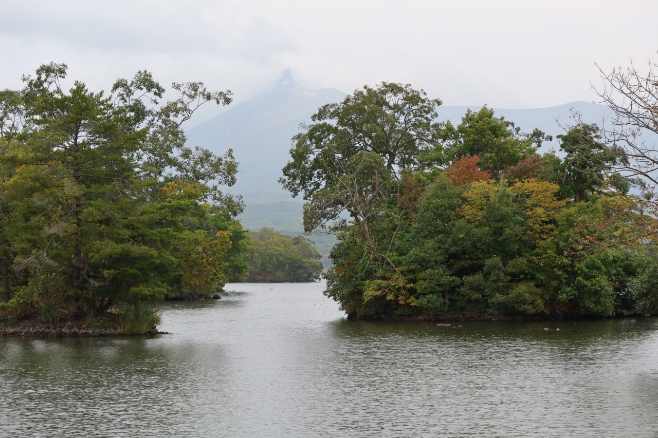 北海道駒ヶ岳の南に広がる一番大きな湖が大沼湖です。大沼国定公園のメインとなる場所で大沼湖を周回する周遊道路が整備されており、様々な景観が見られます。今回訪れたのは10月半ばで紅葉には未だ少し早かったですが、湖に浮かぶ小さな島々には少し色付いた木々が見られ綺麗でした。青空だともっともっとよかったのですが、天気が悪く残念でした。