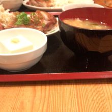 定食らしくご飯と味噌汁と小鉢が付いており料理もまあまあ美味しかったです。