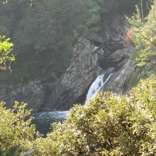 現地にある説明板によると落差6mと言うとても小さな滝で、海に直接落ちる滝は珍しいとのことですが、遠目に見えるだけで滝らしい迫力もないし、海から見るとか近くで眺められたら良いのにと思いました。
