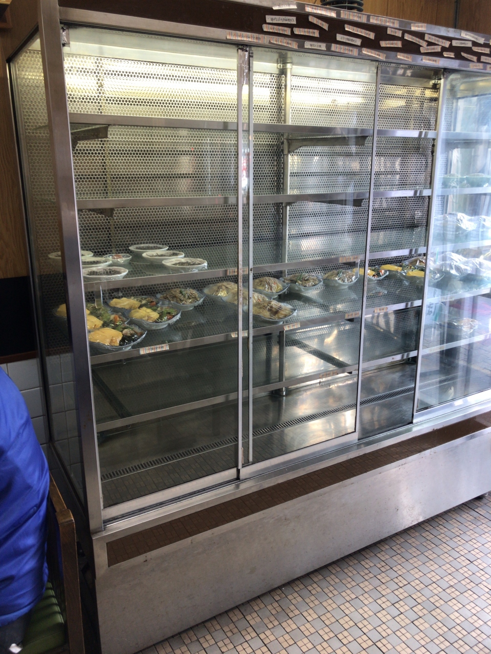 かなり細長い店、入口におかずケースがある、どれも結構なボリューム