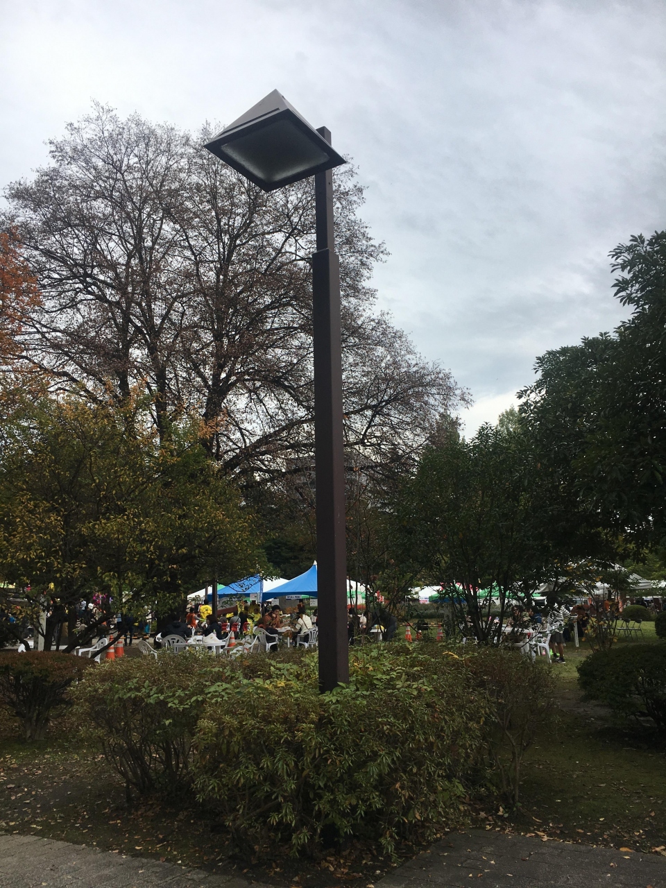 秋の区民祭りの会場になっていました。中央に階段があるので車いすの人は大変そうでした。緑が沢山あるので、お祭り会場として気持ちよく過ごせました。以前、水が流れていたところは、水はなくなっていました。(夏だけ水があるのかもしれません)