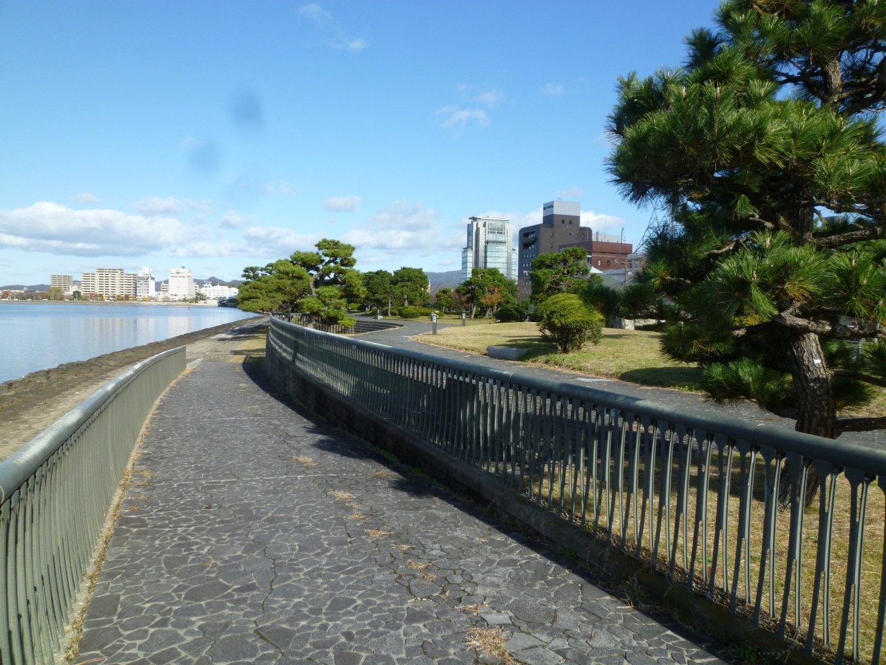 松江駅からは徒歩15分程度、この公園は整備されていて家族連れでシート広げたり、ゆったり遊んだり、釣りもできます。宍道湖から夕日を望むときれいらしいですが、今回は見れませんでした。それほど人もいなくゆっくりできます。