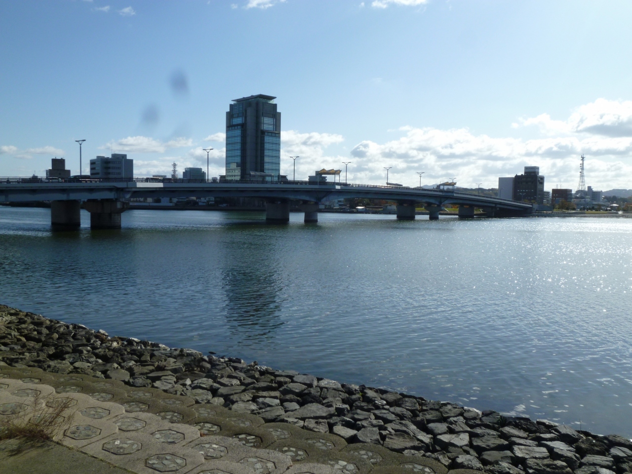 大橋川から宍道湖にかかる大きな橋で、川幅もありそれに架かるこの大橋も大きくとてもいい景色です。それほど人もいなく、風が気持ち良かったです。天気も良く宍道湖がきれいでした。夕日がきれいらしいですが、天気が悪くざんねんながら見れなくて残念。
