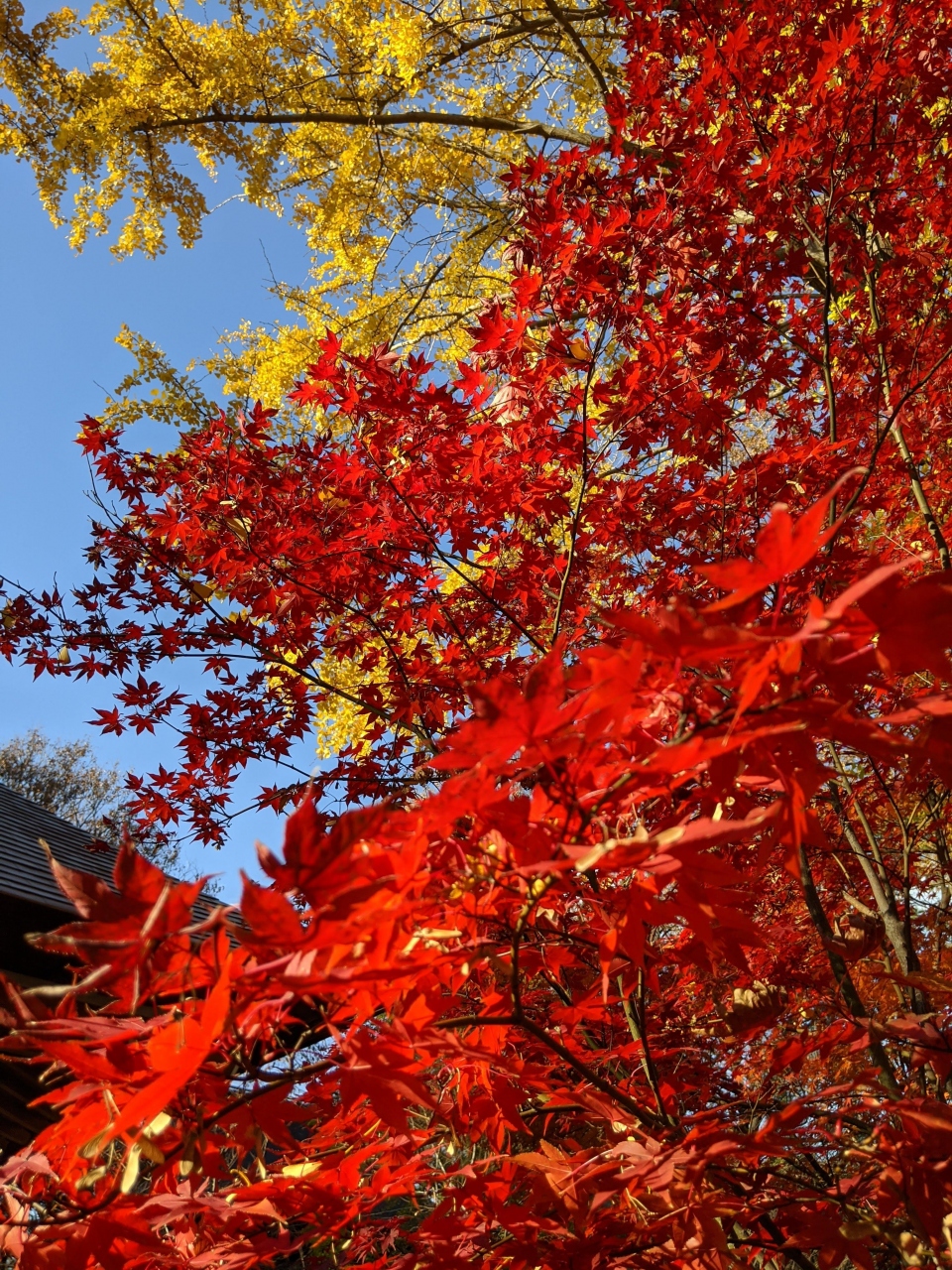 今年は紅葉の色づきが遅かったですが、12/5時点でちょうど見ごろでした。寺内全体が真っ赤というわけではありませんが、日が差し紅葉が映える箇所がいくつかありました。