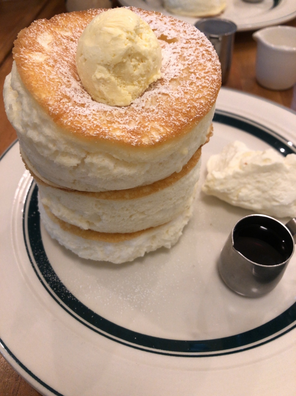 名物のパンケーキは提供に時間帯を設けている。運が良ければ注文出来るといった感じである。フワフワで柔らかく、倒れそうで倒れない。