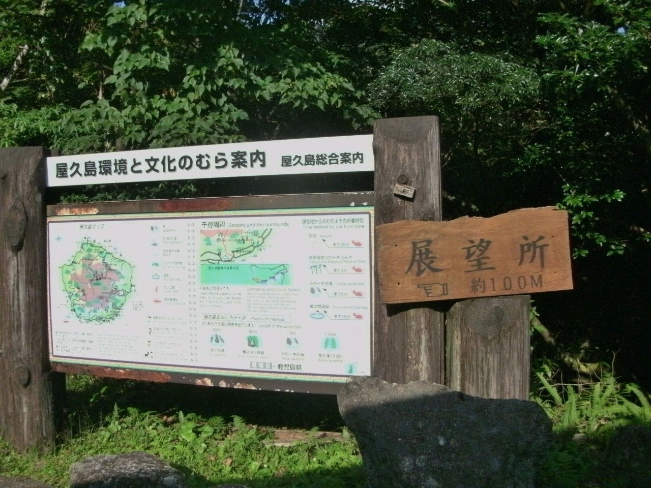 屋久島の南東部、麦生の集落から車で15分ほど細い山道を走った突き当りに大きな駐車場とトイレがあり、そこから2分ほど歩いた先に展望台があります。