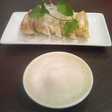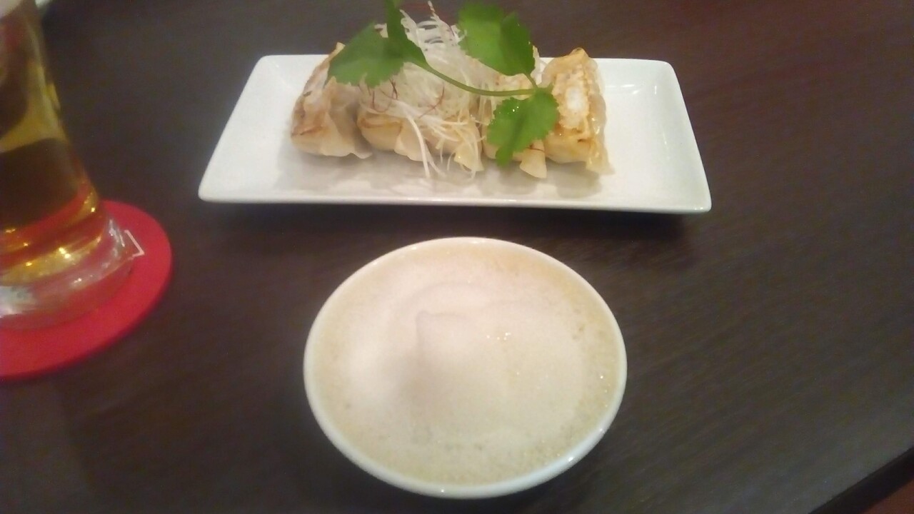 列車の出発まで1時間ほどあり、バル横丁でちょい飲みのつまみを求めてうろうろしていると阿波餃子が目にはいり、こちらで生ビール一杯と一緒に注文。タレがすだち醤油でこんもり泡立っており、食べ方を伺うと、餃子をこの泡の中にダイブさせて食べるとのこと。「アワ」はダジャレなのかとも思いながら、すだちと甘味のあるおいしい餃子でした。