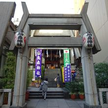 鉄筋コンクリートの鳥居や本殿はビジネス街らしく、参拝者もサラリーマンばかりです。