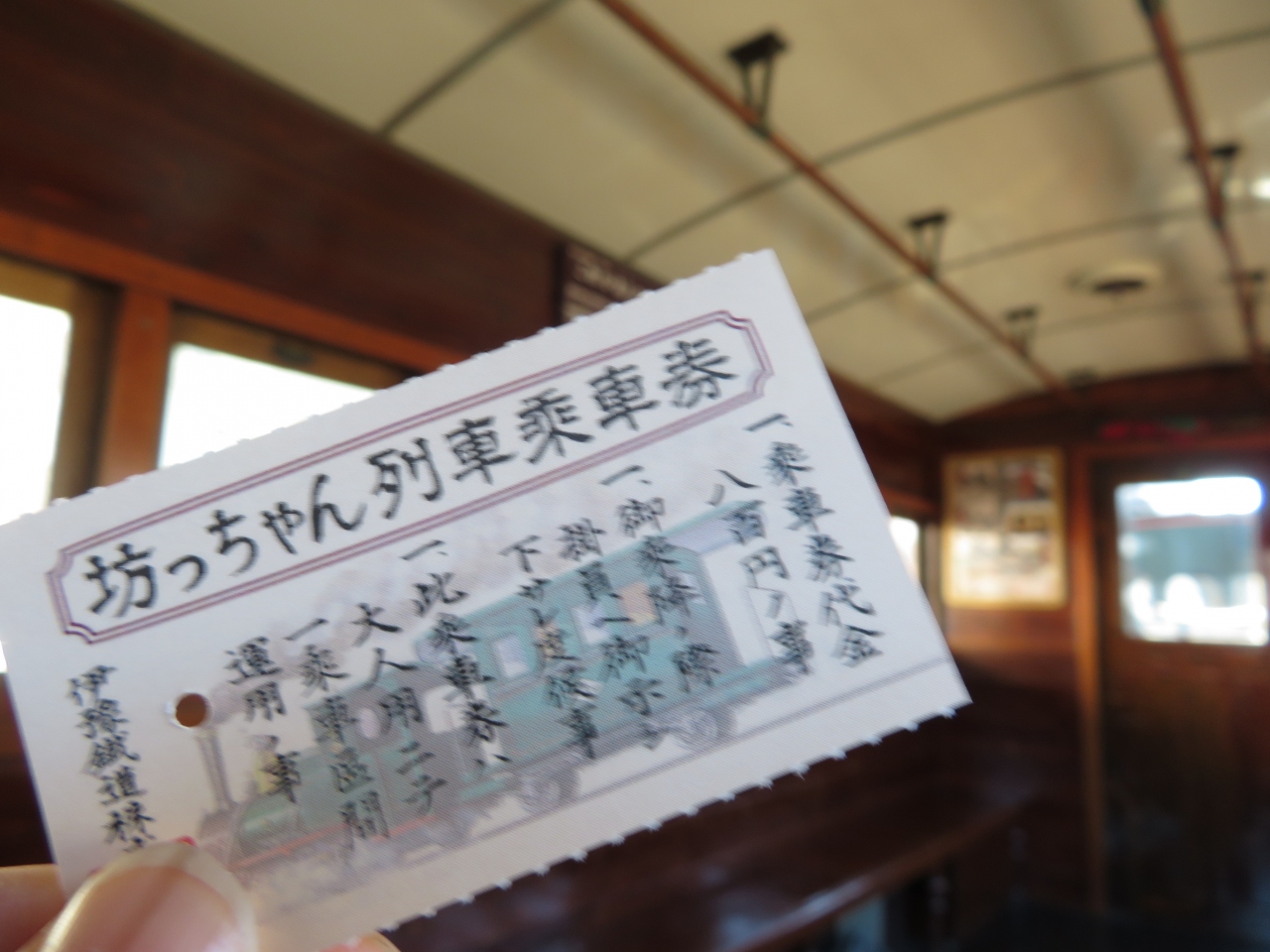 一度乗ってみたかった坊っちゃん列車、発射する古町から乗りました、全て木造の列車はまさにマッチ箱、ガタゴトと揺れる車内もなぜか心地よく感じます。