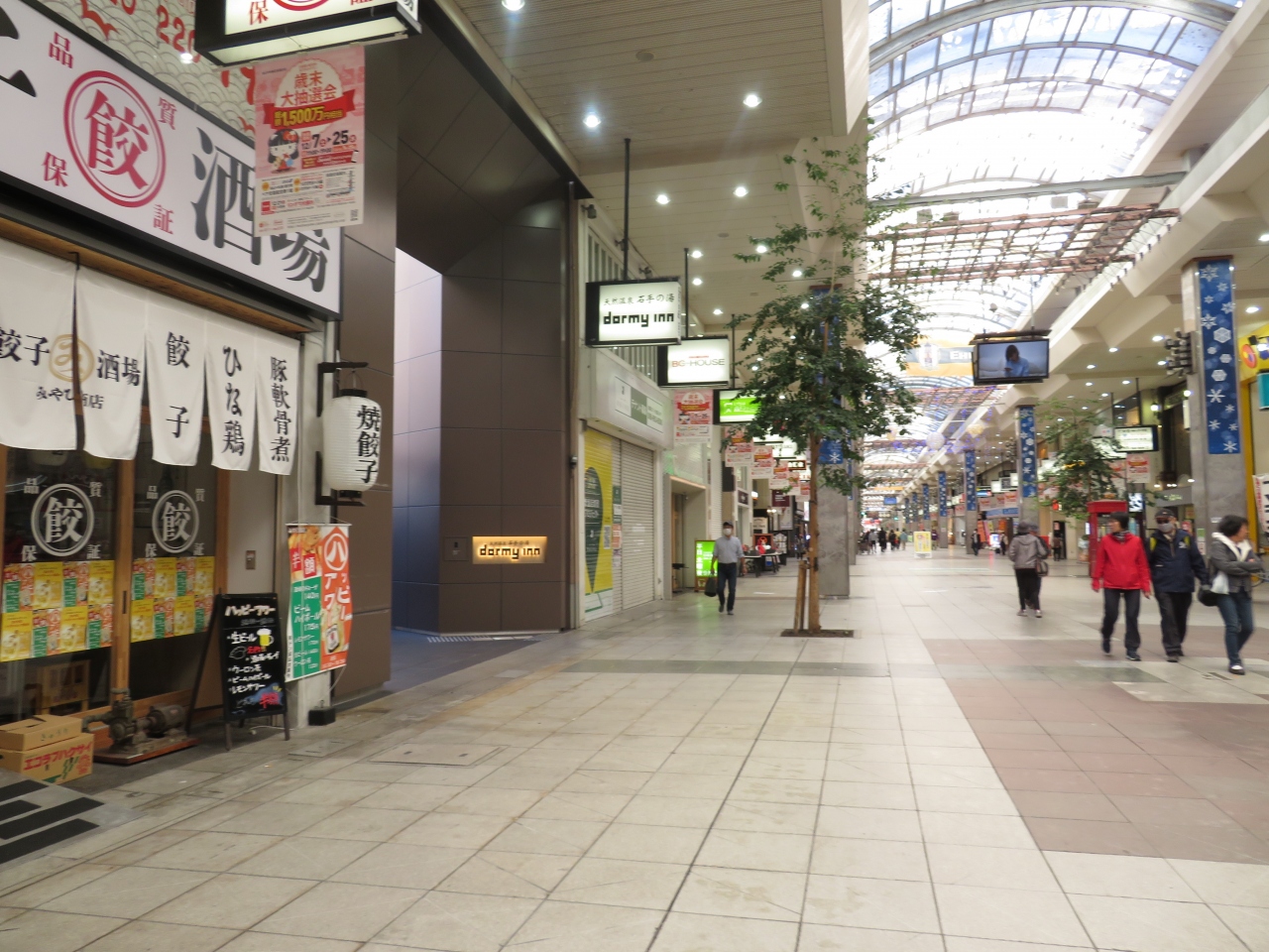 駅前に店が少なく、少し離れたところに繁華街がある街はけっこうありますが、ここもそのひとつ、観光客が行くお店はこの中に揃っています。