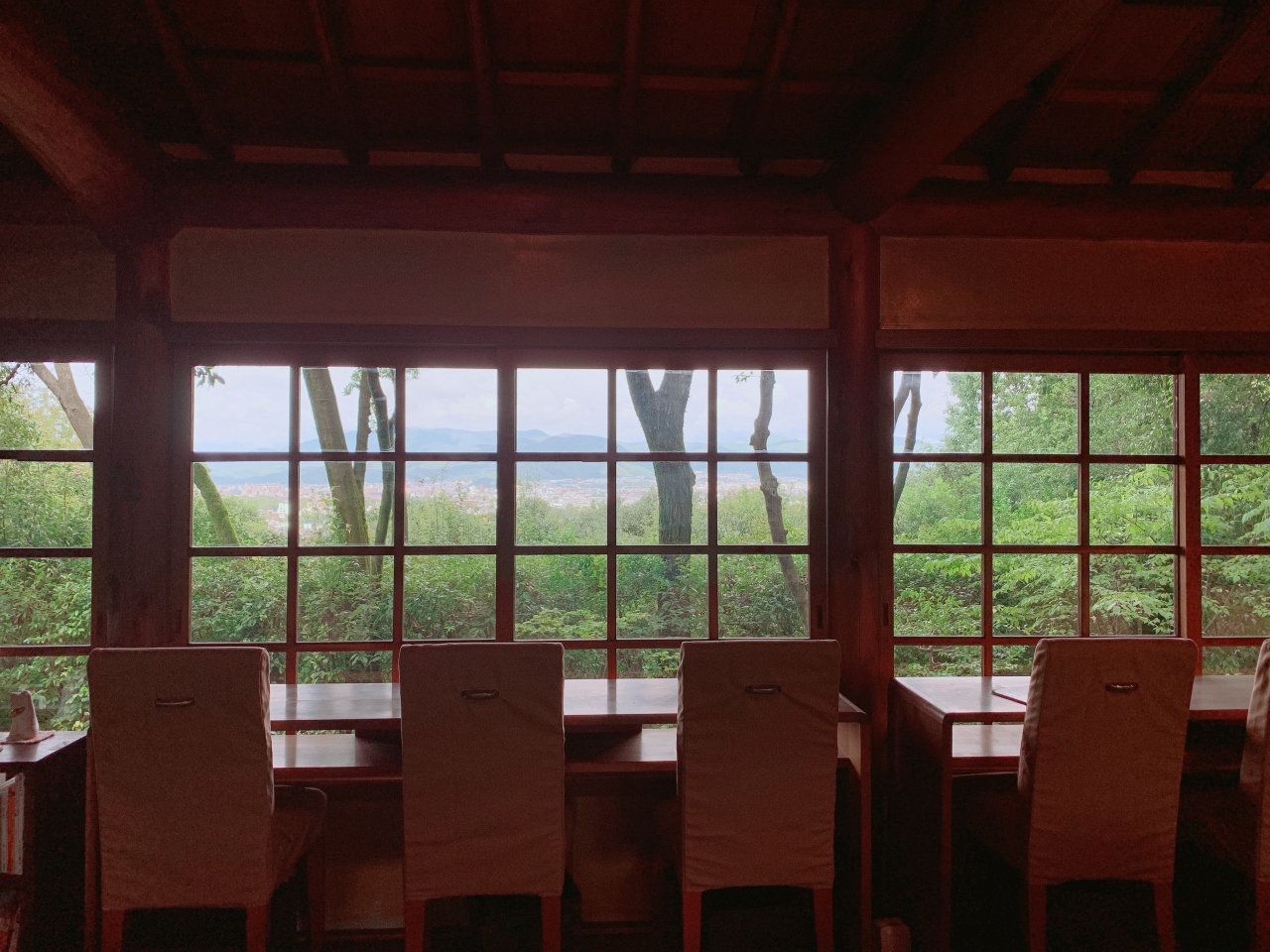 吉田神社の近くにある山の上のあるカフェです。行くのは大変です、行くと感動する見晴らしです。靴をぬぐスタイルなのでみょうにゆったりできるのもいいですね。ケーキもおいしいです。ランチメニューもありますが、今回はお茶しました。