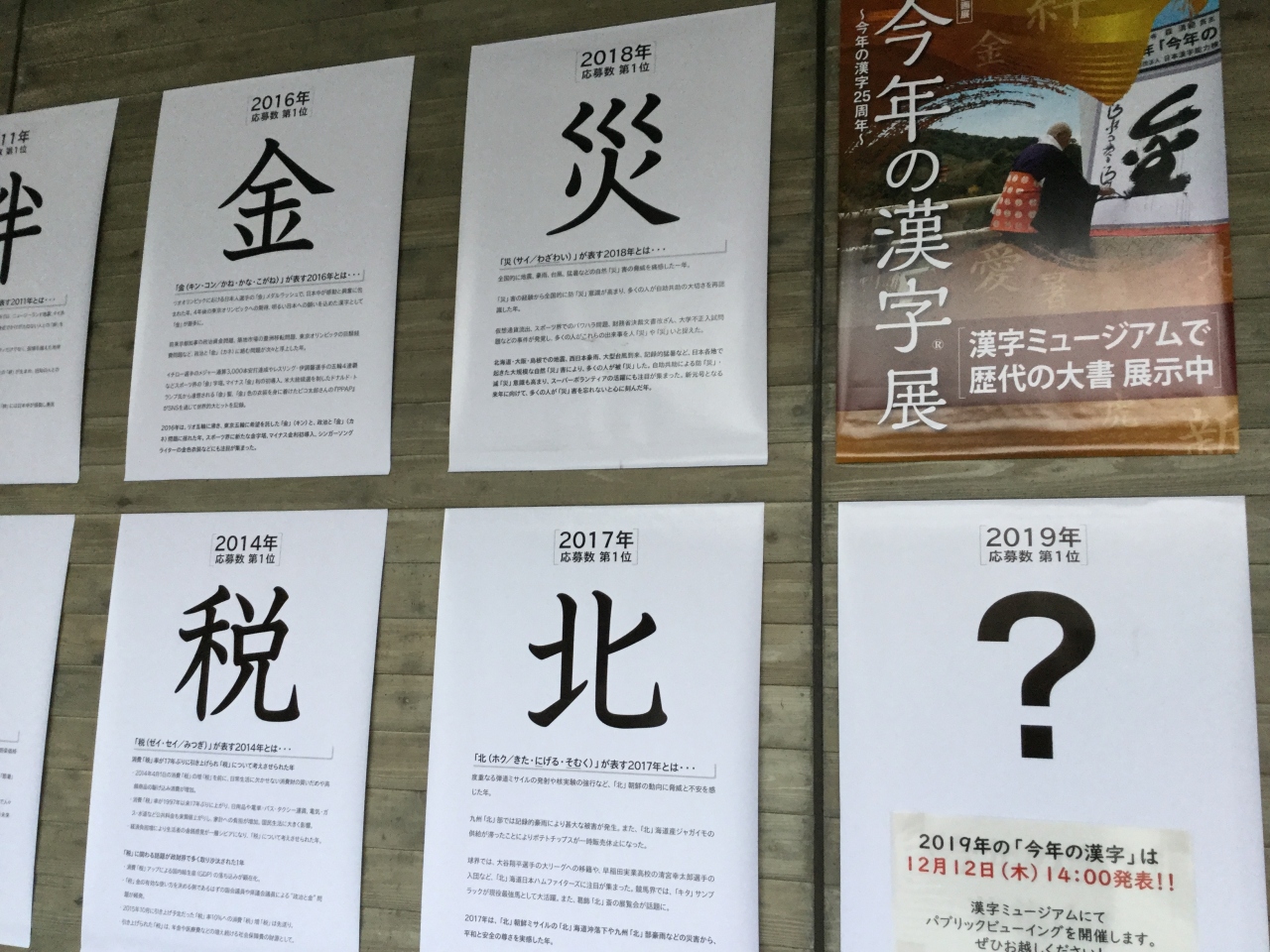京都の祇園、八坂神社のすぐ近くに「漢検漢字ミュージアム」があり、もうすぐ発表される今年の字が気になり立ち寄りました。去年は「災」だったのだと思い出し、今年も色々あったなと感慨深かったです。毎年、今年を表す漢字が清水寺で大きく書かれて一年を振り帰れ、いい行事だなといつも思います。年号が新しくなった初めの年、大きな一年だったですね。漢字ミュージアムには通り添いにカフェもあって一年を思いながら、ゆっくり抹茶を頂けました。