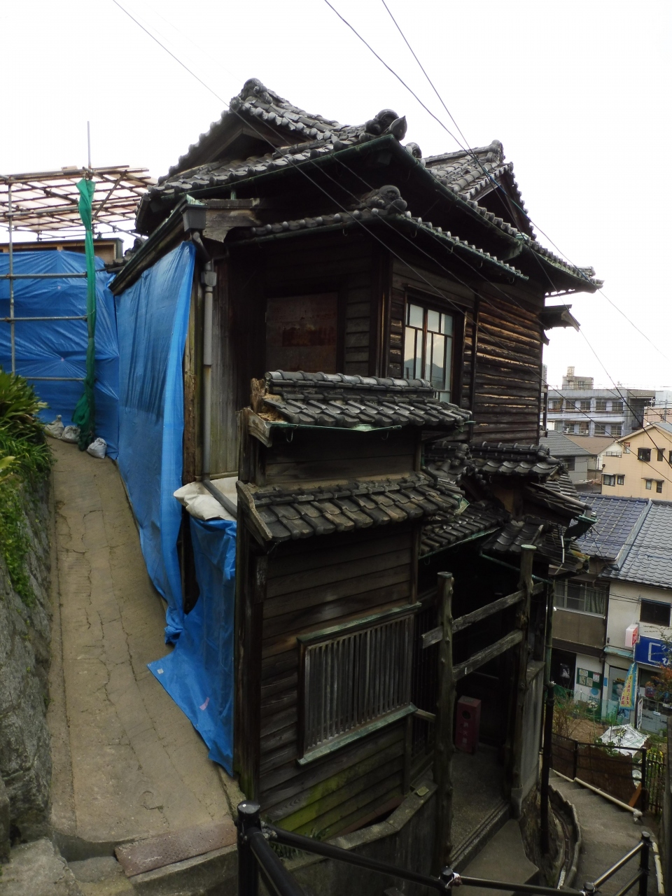 尾道在住の友人が連れて来てくれました。ここは個人で行くと少し場所がわからない確実に迷子になりそうな個人の私有地の私道みたいな所の階段を上った崖の所にへばりついているように建っている日本家屋です。