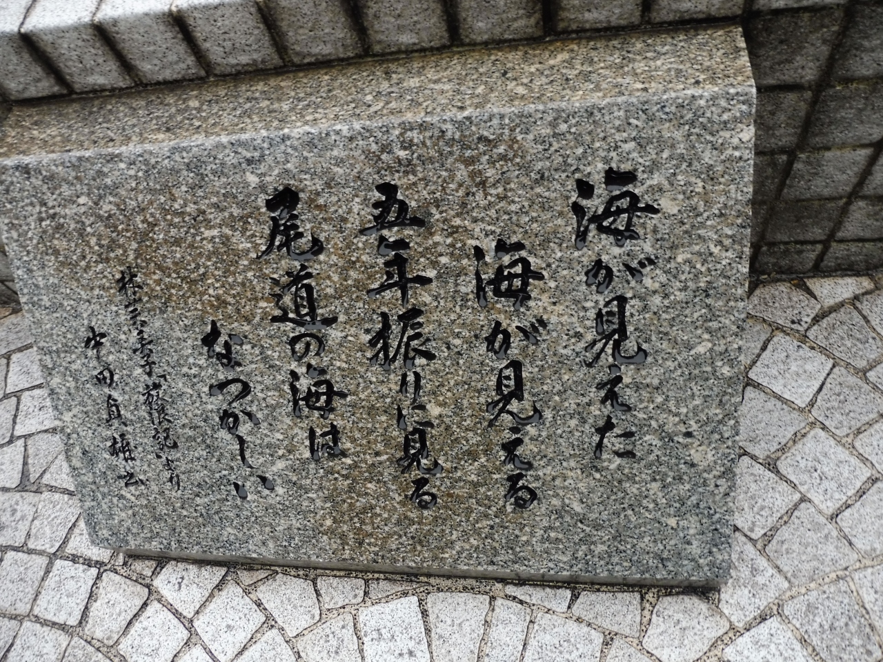 彼女の代表作「放浪記」の「海が見えた 海が見える 五年振りに見る尾道の海はなつかしい」と一説が刻まれた石碑が石像前に設置されています。