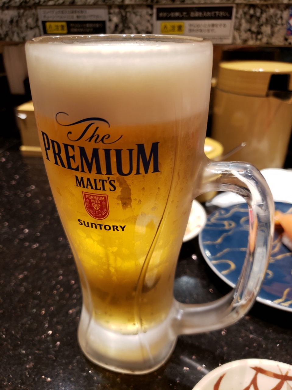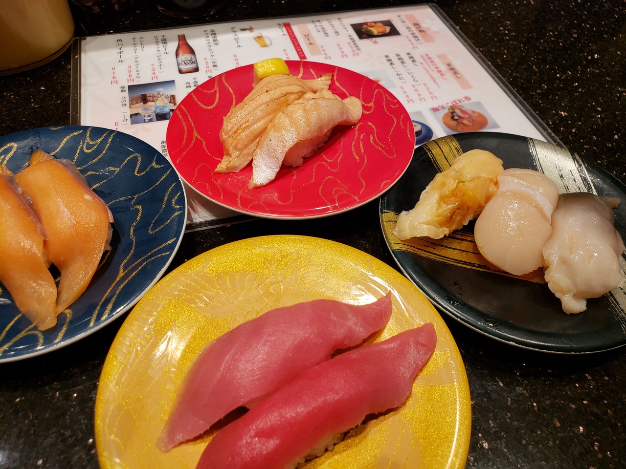 海鮮やらどんぶりの店も有りますが、好きなネタを好きなだけいただくには、回転寿司がお手頃ですね。ランチの混雑前だったので、待たずに着席です。回転寿司では、レーンに流れているものを眺めながら、目の前の板前さんにオーダーします。生ビールに5、6皿いただいて3,700円位でした。まあ、空港価格かもしれません。