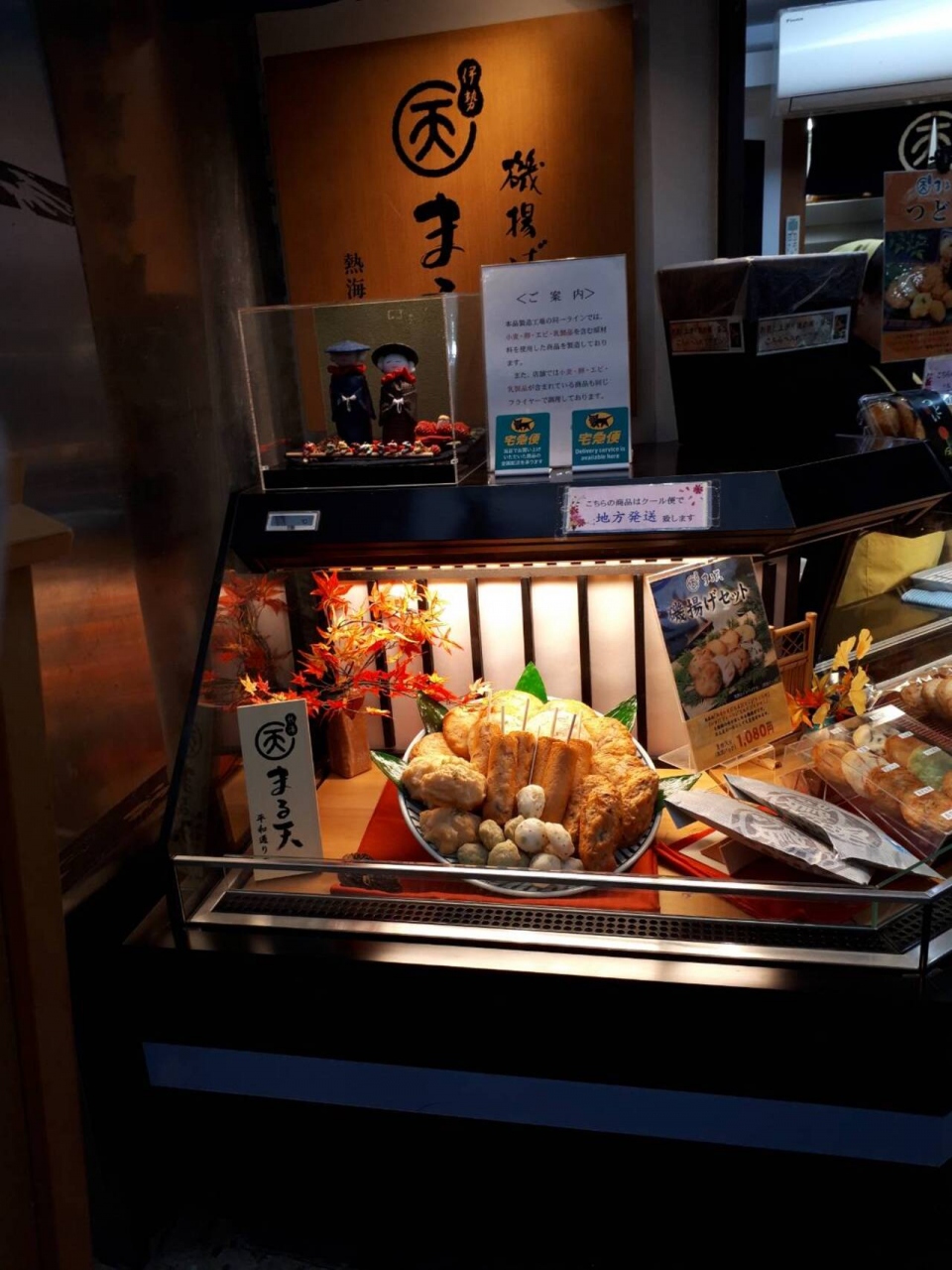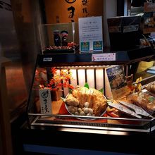 熱海の商店街のこちらでお土産を買いました。揚げたかまぼこを販売しています。様々な揚げかまぼこがあり、あげたてを食べられる食べ歩きメニューもありました。
