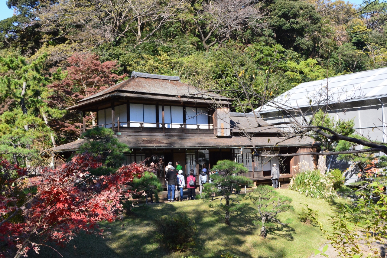 三溪園の内庭にある池のほとりに雁行して3棟の存在感のある数寄屋造りの建物が並んでいますが、こちらは紀州徳川家初代の徳川頼宣が紀ノ川沿いに夏の別荘として建てた建物を大正6年にここに移築しています。
