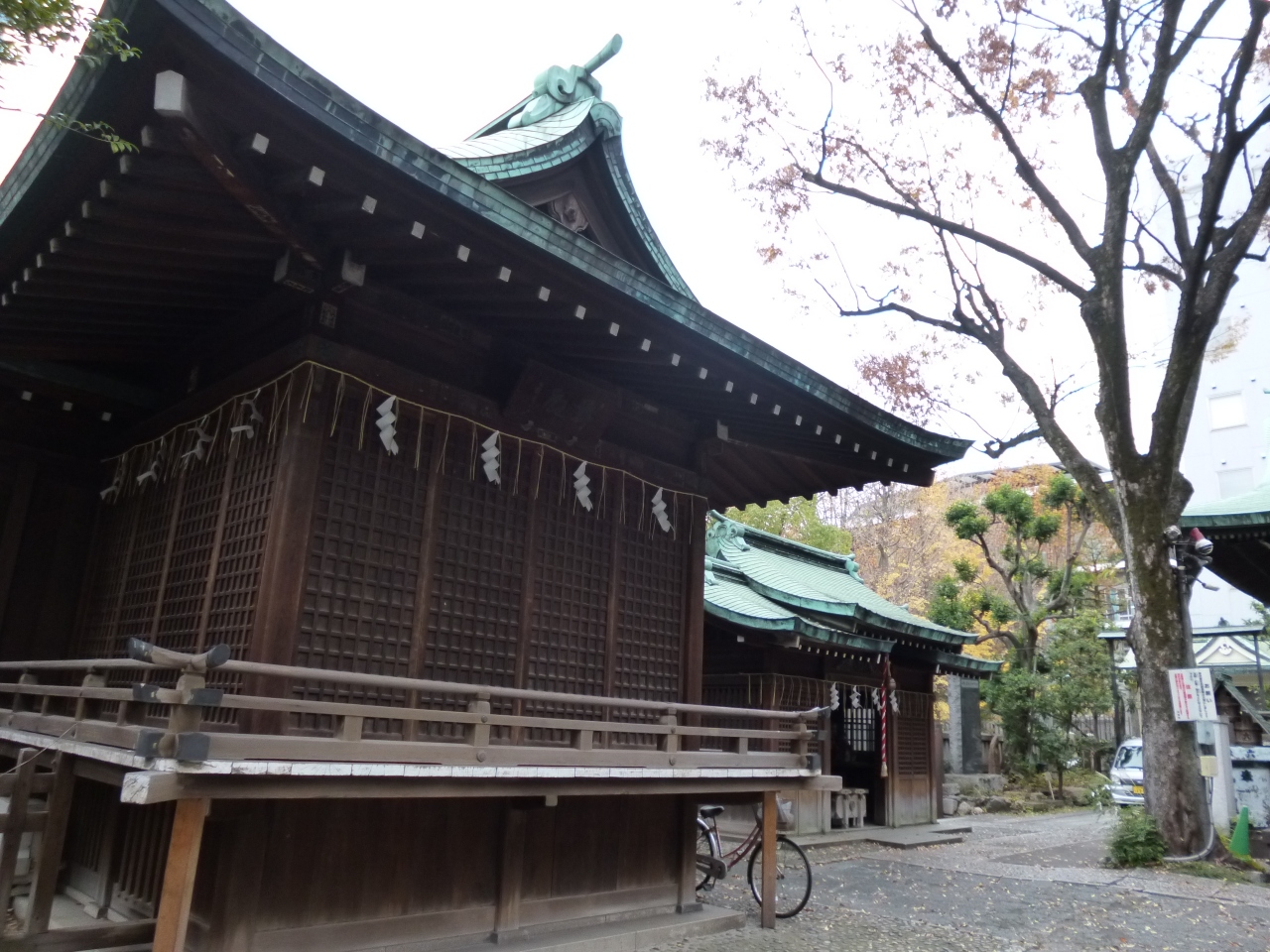 八丁堀の交差点から南東方向に、徒歩数分の場所にある神社です。敷地自体はさほど広くないですが、境内には本殿のほか、神楽殿や力石、末社などもあり、この界隈にある神社としては、かなり見どころが多いと感じました。あいにくの曇り空でしたが木々の紅葉も見られ、一方で参拝客の姿は少なく、厳かな雰囲気が感じられました。