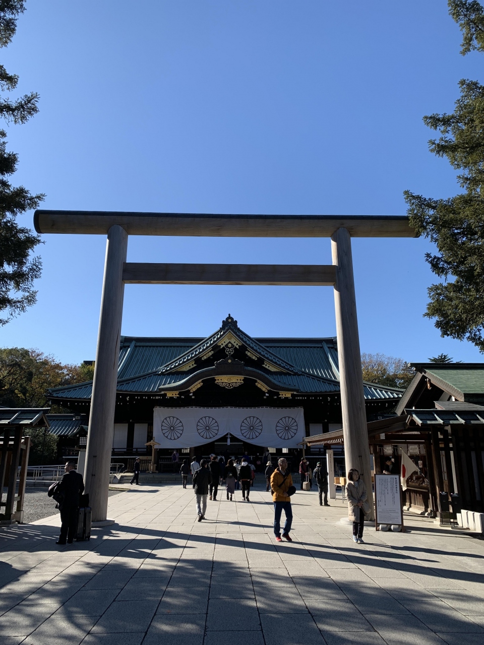 靖国神社本殿お手前にあって心休まる木製の門が中門鳥居です。