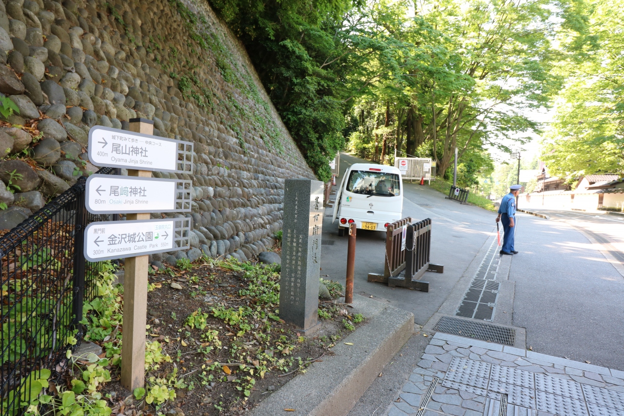 尾崎神社から徒歩すぐの場所にある、金沢城跡へ続く坂です。