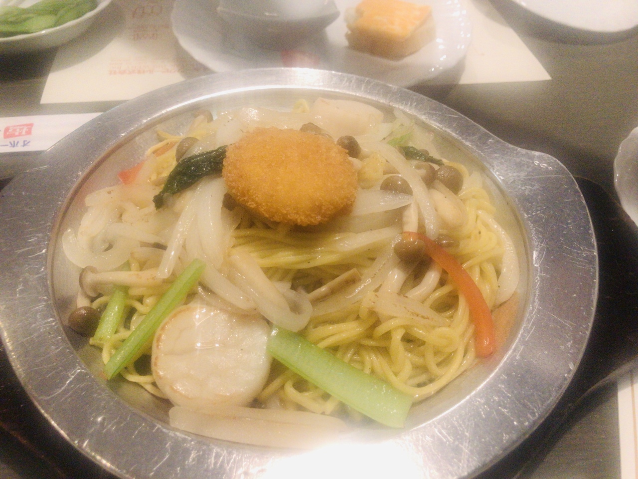 北見のB級グルメ、「オホーツク北見塩やきそば」もいただけます。熱々の鉄板に載った焼きそばに「魔法の水」をかけて仕上げます。立ち昇る湯気が食欲をそそります。なまら、旨いべぇ。