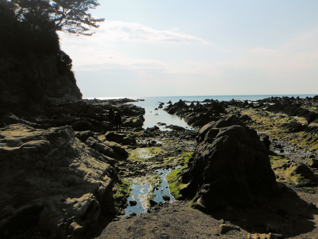 海を見ながら、ソレイユの丘まで歩けばいいかなという感じの軽い気持ちで、海岸線沿いの荒々しい磯の岩場を歩きました。