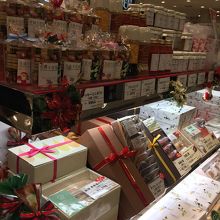 品川駅の駅ナカにある果物の王様千疋屋さんです。店舗面積が狭いのでショーケースにはギッシリとケーキが並べられています。クリスマス時期だからか、クッキーなどのラッピングが可愛いらしいおリボンになってました。