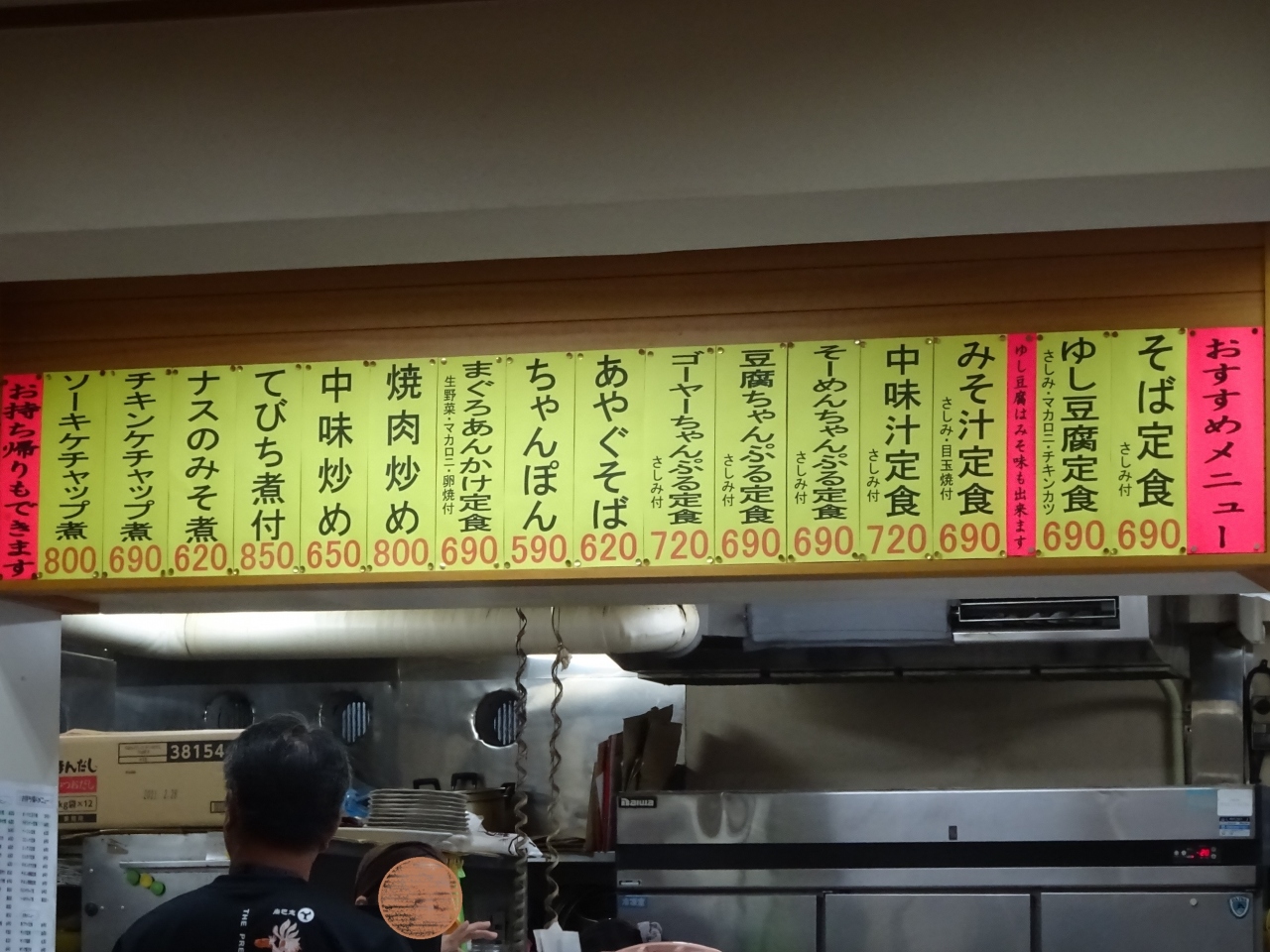 メニューはゆし豆腐、沖縄そば、チャンプルー類、てびちなど沖縄ならではの料理が一通り揃っています。