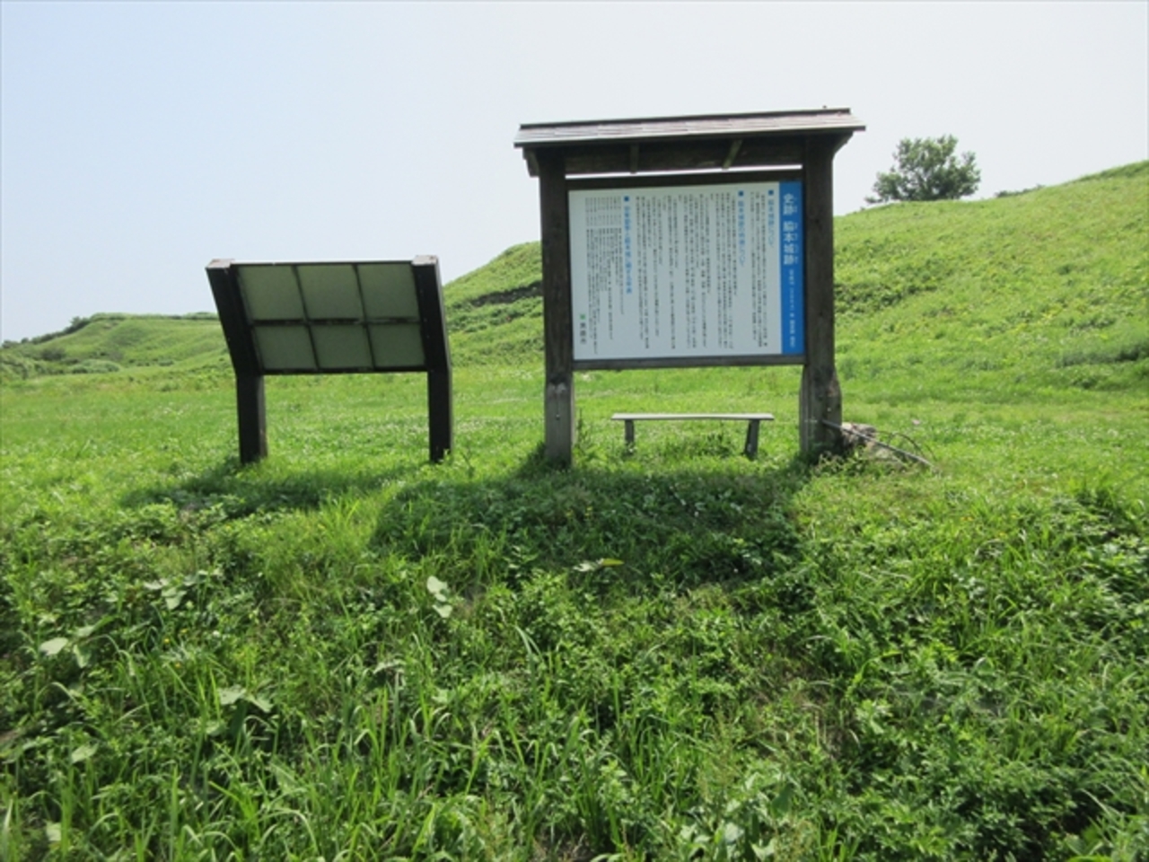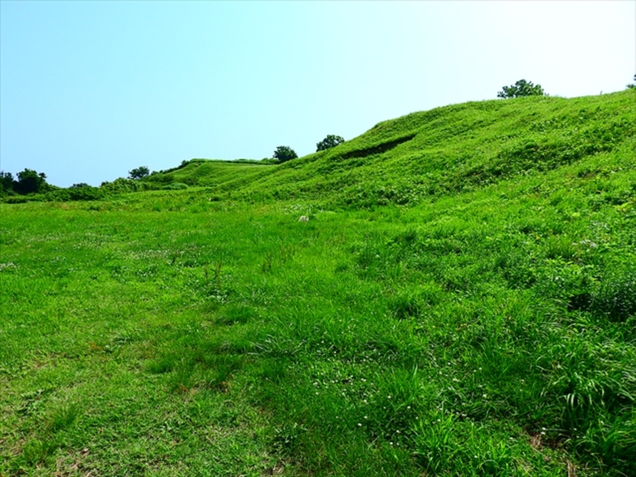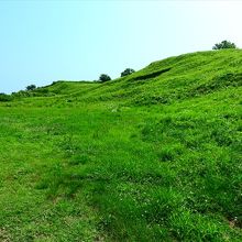 男鹿半島の付け根辺りにある古代の城跡です。入口が良くわかりませんでしたが、国道沿いに駐車できるスペースがあるので、そこから歩いて行くのが一般的のようです。ただし、かなりの急坂を登らなければいけないので、歩くのはそれなりに大変です。空いていれば城跡の入口まで車で行くことも出来ますが、道路がかなり狭いので、対向車とすれ違うのはかなり大変だと思います。また、上には駐車スペースが少ないので、混雑していそうな場合には徒歩をおすすめします。入口にスタンプが設置されている小屋がありましたが、無人でした。城跡自体は山城なので石垣もなく、なだらかな丘と言った感じです。