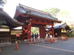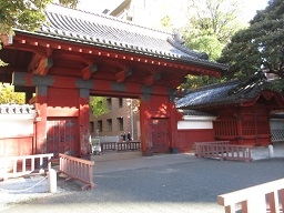 東京都本郷の東京大学建つ場所は加賀藩前田家の上屋敷の有った所で、赤門は13代加賀藩主、前田斉泰が徳川家斉の娘溶姫を正室に迎えた際に建てられた御守殿門です。朱色の均整のとれた門は紅葉の時期にはより美しく感じられます。