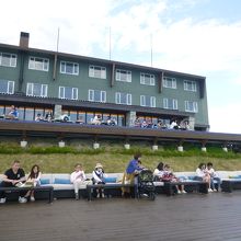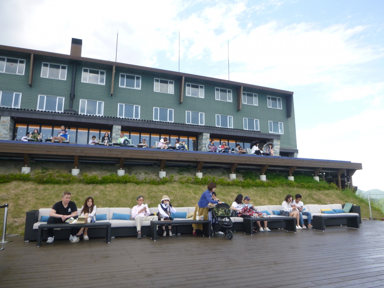 大人気のびわ湖テラス、平日に行きましたがやっぱり人一杯でした。景色はとにかく素晴らしい、遠くまで見渡せます。山の上だけに風が吹くとかなり涼しいです、下界とは全然違います。椅子やソファーが幾つもありますが、中々空かないので場所確保に苦労しました・・・。