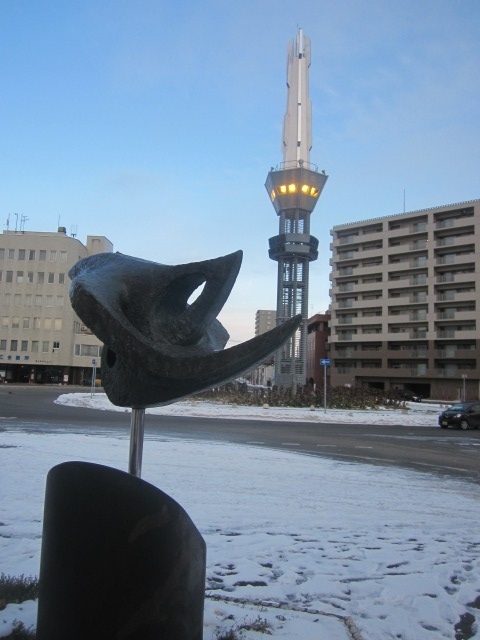 今まで、バスや車の運転などで何度も通ってきたロータリーですが、実際に歩いてみると、途中に印象的な彫刻作品が設置されていたり、美しいトドマツ系の並木(樹形からしてモミ屬系の樹種だと思いますが、トドマツ以外の園芸種の可能性もあります)が見られたり、と、案外今まで知らなかったロータリー界隈での新発見があって、新鮮な喜びを感じることが出来ました。