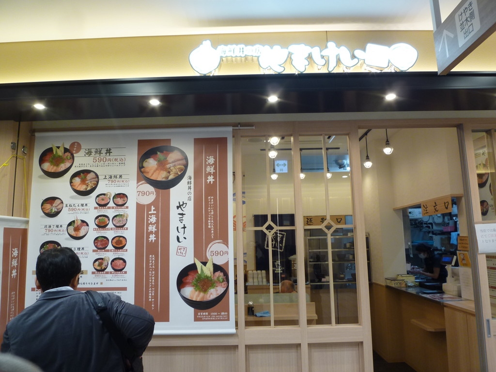 姉と食事をするので府中で待ち合わせました。色々見て回りましたが、良さそうな所が無かったので、府中駅ビルにある「やまけい」で海鮮丼を食べました。数種のネタの海鮮丼に味噌汁が付いて、海鮮丼590円。あまり期待していませんでしたが、美味しかったです。