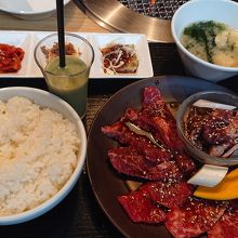 新宿西口駅近く、小滝橋通り沿いにあるビルの3階にあるお店。お店の看板が見にくいので、気にしないとわからないかも。2018年2月開店と、周辺のトラジのなかでも新しく、お店はきれい。個室もあるのでビジネスでも使えるかも。もちろんお肉のクオリティは高く、お店の入口には他のトラジと同じくお肉の入った冷蔵庫があります。今回はランチで訪問。「ちょっとだけ贅沢に」ということで「焼肉御膳」(2100円税抜)に。カルビとサガリは三枚ずつですが、柔らかいお肉で、一つ一つが大きいので満足感があります。熟成漬込和牛は、ドングで持つだけでもとろけちゃいそう。味が染み込んでいて美味。韓国風豆腐とチヂミ、キムチ、スムージー、ライス、ワカメスープがついていて大満足。ランチ時は、もう少し安めの焼肉や丼もの、冷麺もあるので、また行きたい。