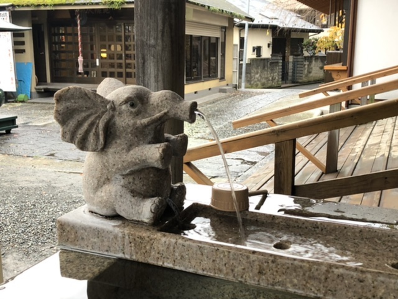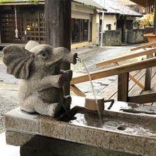 本堂横のお手水の吐水口は象とフクロウで、ちょっと可愛い感じになっていました。