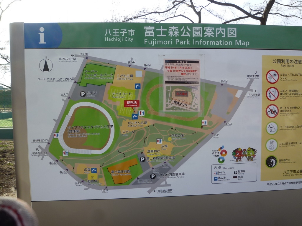 今回は、桜を見に来ました。満開にはまだ早いかったようです。夜桜が人気なのか、日中は出店も準備中、人もまばらでした。ここは、八王子市内の最古の公園であり、富士山がよく見えることから、富士森と呼ばれましたが、今は見えるこちができません。八王子市民の憩いの場になっており、敷地内には野球場、陸上競技場、テニスコート、市民体育館、富士浅間神社があります。春の花見の時期には出店が立ち並び、八王子まつりでの花火大会の会場にもなっています。