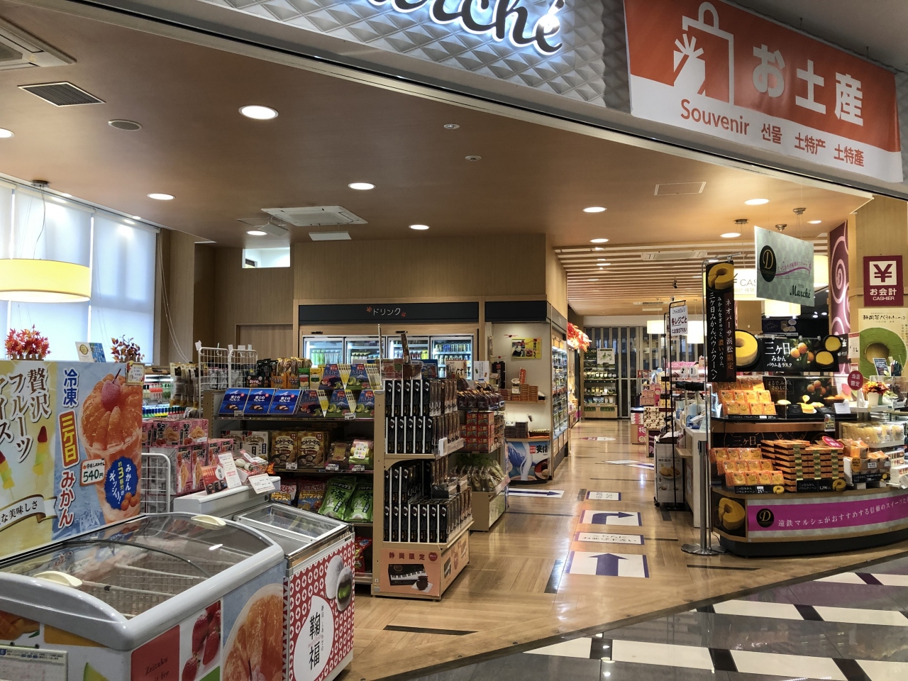 新東名高速道下り線のサービスエリア鍵盤模様の建物が目を引く「ネオパーサ浜松」内にある総合店舗、広い建物なのでお土産やフードコートも充実しています。