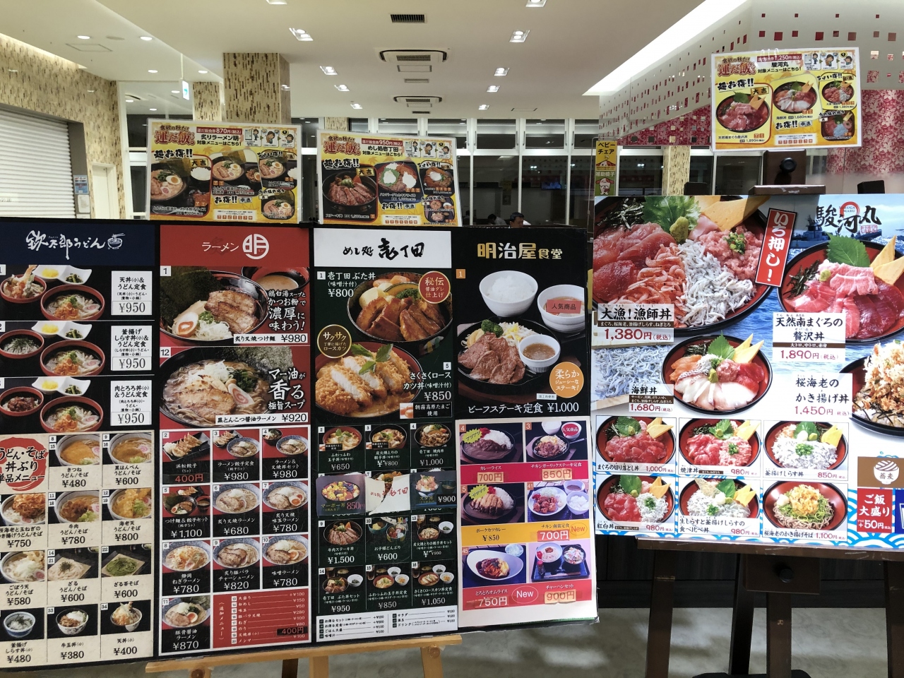 新東名高速道下り線のサービスエリア「ネオパーサ静岡」内のフードコートには、海の幸やラーメン、うどんと多種多様にありますが、明治屋は名前でお分かりかと思いますが
