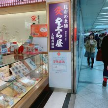 ホワイティ梅田にある老舗の昆布屋さんです。おみやげなどを買いに行くのはちょうどいいですね。おいしい昆布なのでどの世代にお渡ししても喜んでいただけるのがうれしいですね。いろんな種類が売っていて選ぶのも楽しいです。