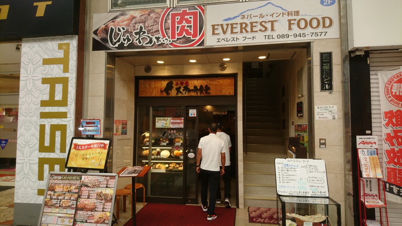 松山市の商店街、大街道にあるカレーのお店です。カレーと言っても日本のカレーラースではありません。「エベレストフード」という店名の通りネパールカレーです。特にナンが大きく、しかも安いのでビックリしました。味も、エベレスト級で、美味しかったです。