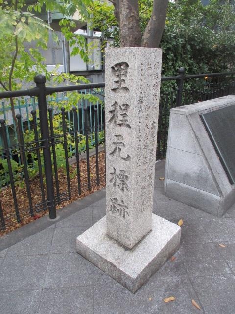 高麗橋のたもとにひっそりと建っている石碑です。明治時代にこの高麗橋のたもとに建てられたということです。西日本の主要道路の拠点となりました。この石碑の側面にその説明が書かれています。高麗橋といいコンビです。