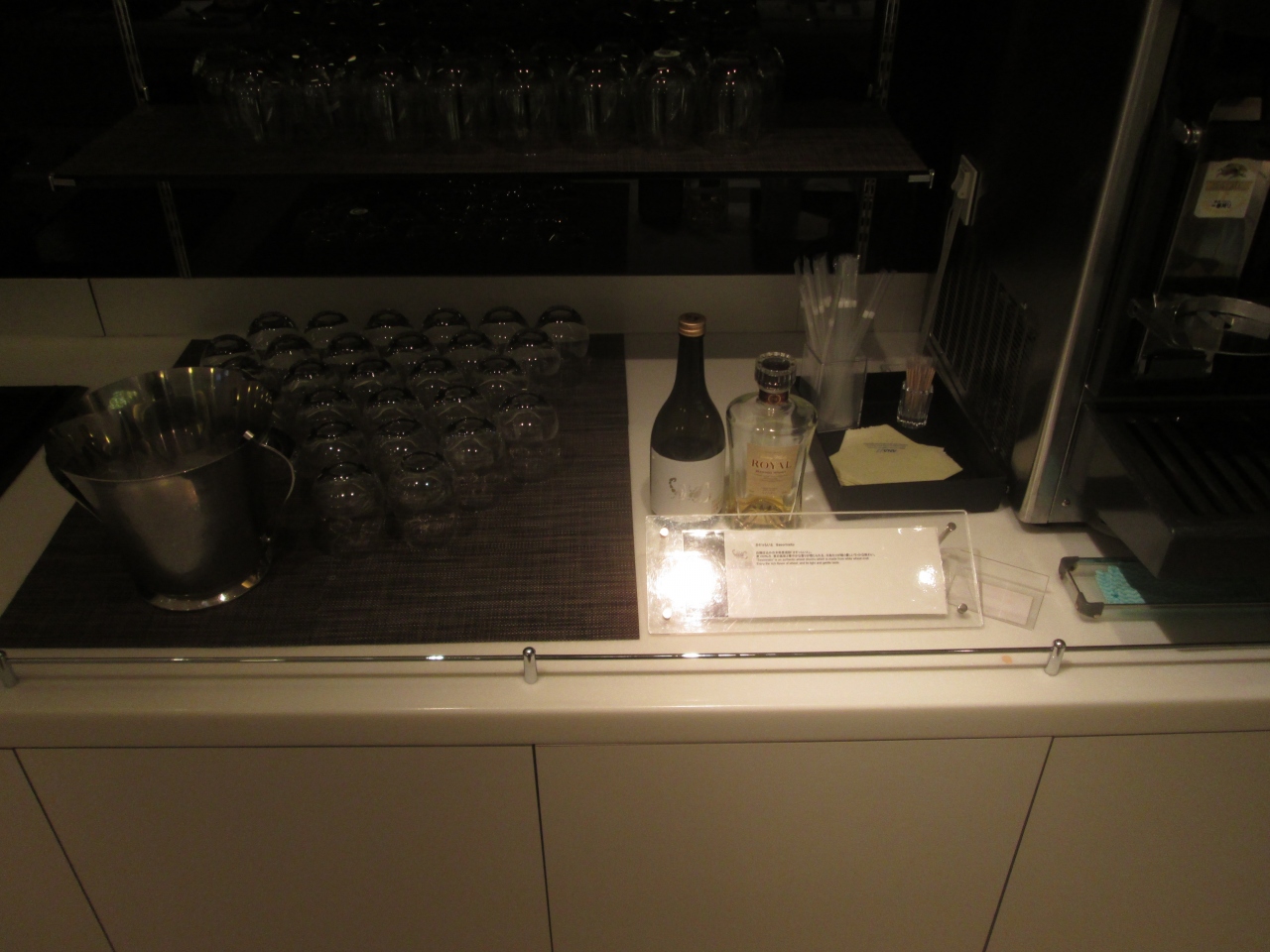 ANA アライバルラウンジ(成田国際空港)にウィスキーが置いてありました。ここは国内線搭乗者向けのラウンジです。山崎というわけにはいきませんでしたが、国内産の標準的なウィスキーが1種類あり、ラウンジ内のスタッフがお水と氷をこまめに補充していました。