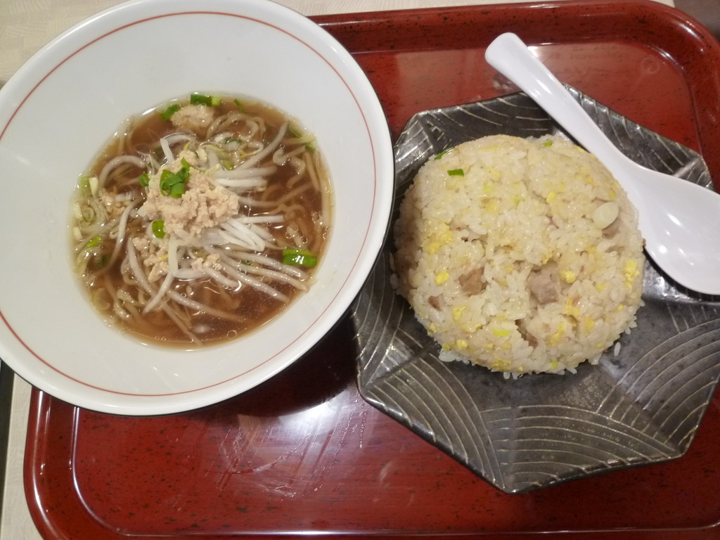 ドン・キホーテで買い物した後、対面に新しくできたお店を見てみました。値段が安く、美味しそうなので入ってみました。炒飯と麺のセット、麺、餃子を注文して、シェアしていただきました。味は値段の通りのそこそこ。料金は1000円位でした。激安でした。